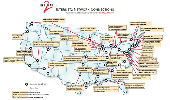 The CyberInfrastructure for Phylogenetic REsearch (CIPRES) Science Gateway, which provides browser-based access to high-performance computers for thousands of researchers across 90 countries, including those studying COVID-19 solutions, is supported by the CENIC and Internet2 networks. “In two months during the pandemic, at least 164 unique individuals ran hundreds of jobs analyzing coronavirus-related DNA sequences,” said Mark Miller, a bioinformatics researcher at the San Diego Supercomputer Center and principal investigator for CIPRES. “Especially now in COVID times, it would be hard to overstate how important this kind of connectivity is.” Network services, such as Internet2’s Cloud Connect service, accelerate data processing times by providing direct access to leading commercial cloud providers through the existing regional and national infrastructure.