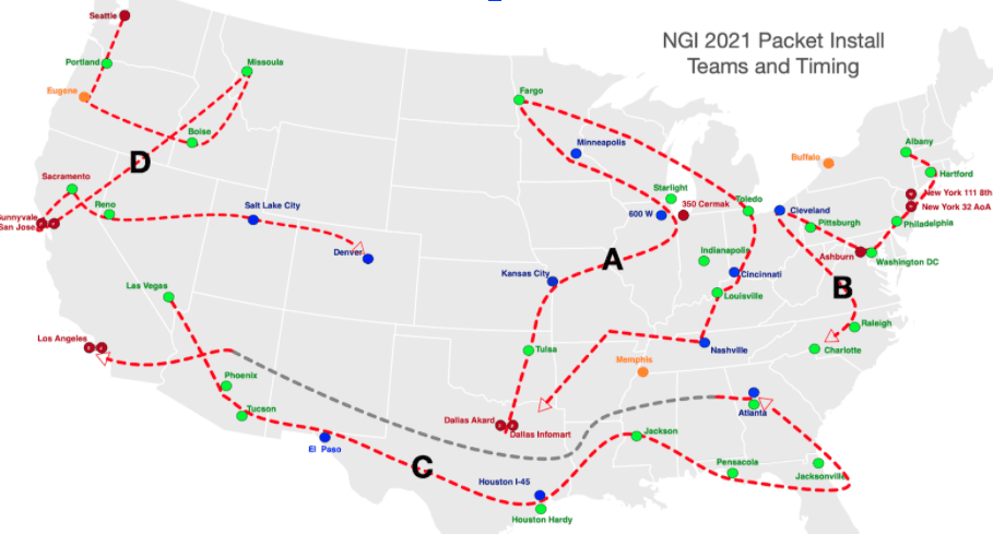 Building on the progress made on the NGI optical upgrade, we are also pivoting from planning activities to active deployment of the NGI packet platform. The deployment includes massive 100G and 400G capabilities in 48 locations throughout the country with over 80 new Cisco 8200 routers being deployed. While there are still plenty of the fine details to work through, the high-level planning is significantly complete. Our installation partner, GDT, has begun to stage equipment and is preparing for deployment. The current plan is to have four cohort teams working across the country beginning in January 2021, with installation, cabling and “ready for testing” completed at the end of March. That schedule allows testing and interconnection with the current backbone and network connectors in April and migrations in May through July.