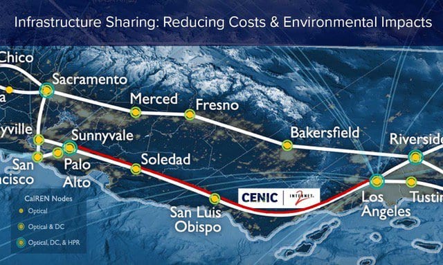 Last week, CENIC announced that the coastal network path from Los Angeles to Sunnyvale can now carry flexible-grid wavelengths of 400 gigabits and beyond on each of its 40-plus channels. CENIC’s CEO, Louis Fox said, “These upgrades provide CENIC’s members a more robust and efficient network on which to conduct data-intensive research, support teaching and learning, provide cutting-edge medical care, and enhance community engagement.” The completion of the upgrade is important for a second reason, however. It represents a milestone in infrastructure sharing between CENIC and Internet2 as both networks move to higher-bandwidth technologies and seek to reduce both cost and environmental impact.